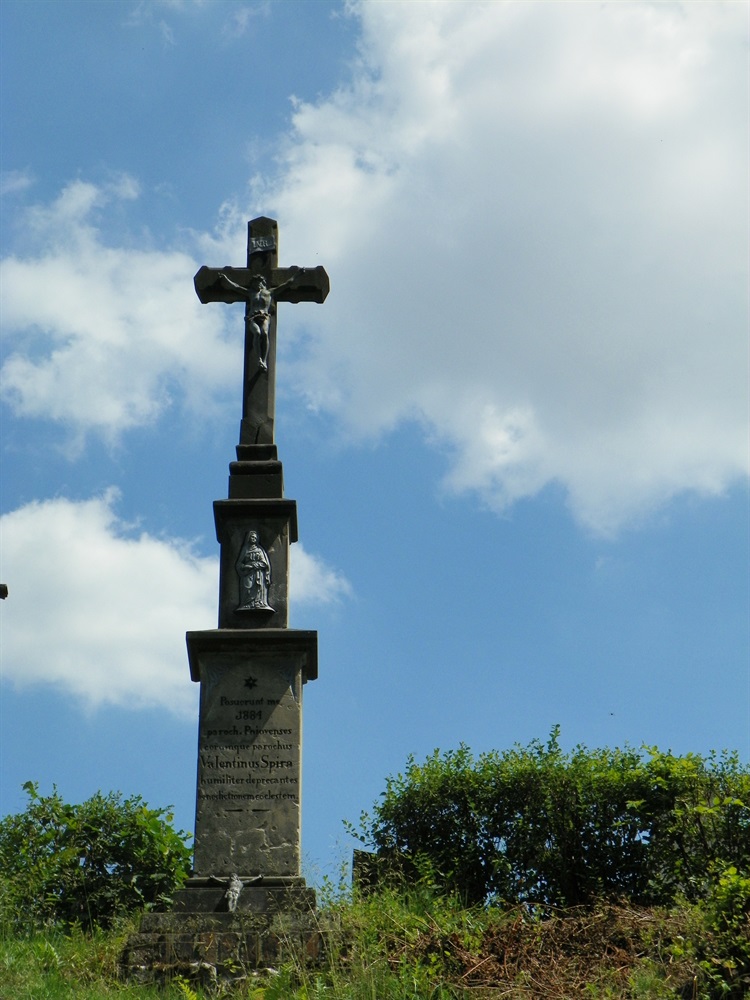 Przy ul. Wiejskiej, na terenie miejscowego cmentarza znajduje się krzyż z Bożą Męką. Składa się z dwóch postumentów postawionych na kaskadowych płytach fundamentowych, które tworzą trzy płyty. Na nich leży postać Ukrzyżowanego Chrystusa wykonana prawdopodobnie w formie odlewu, może z cynku lub ołowiu, a zarazem być może jest to figura, która została zastąpiona przez obecną na krzyżu.