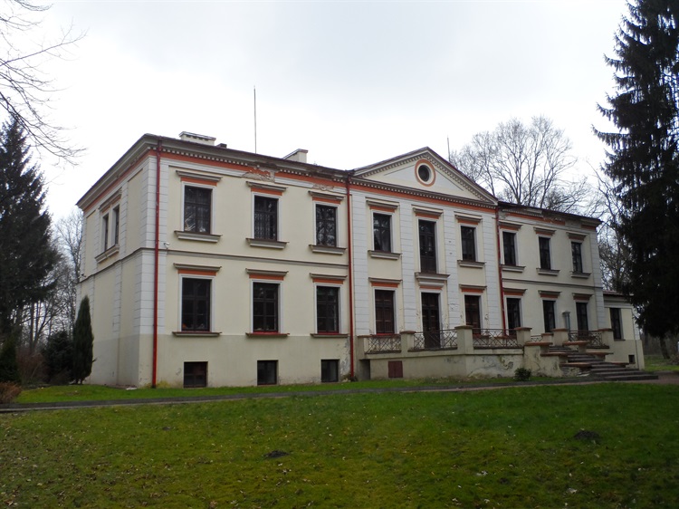 W 1817 r. w miejscu dworu został wybudowany murowany pałac według projektu Hilarego Szpilowskiego w stylu klasycystycznym dla Wojciecha Wasiutyńskiego. Piętrowy pałac z poddaszem został wzniesiony na planie prostokąta. Był pokryty niskim czterospadowym dachem o połaciach pobitych blachą. Posiadał dziewięcioosiową elewację frontową z ryzalitem wysuniętym poza lico elewacji, zwieńczony trójkątnym szczytem z oculusem. Elewacja ogrodowa posiadała ryzalit pozorowany, który był poprzedzony otwartym tarasem. Pałac otaczał park krajobrazowy z owalnym stawem.