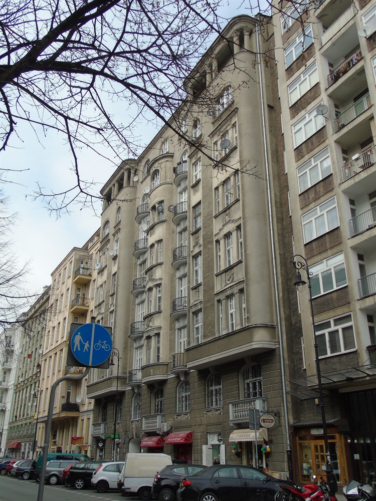 Jedną z eleganckich czynszówek możemy zobaczyć pod numerem 10. Ukończona około 1912 r. była wyróżniającym się warszawskim budynkiem. Modernistyczny obiekt o ośmiu kondygnacjach składał się z frontowego budynku i zespołu oficyn otaczających trzy wewnętrzne podwórza. W fasadzie frontowej umieszczono trzy wykusze, z których dwa zewnętrzne zwieńczyły na wysokości siódmego piętra duże balkony nakryte daszkami wspartymi na kolumnach. Elewacje ozdobiły delikatne detale sztukatorskie. Kamienica pozostawała własnością Arona Oppenheima, a po jego śmierci do spadkobierców z rodzin Oppenheimów i Regirerów.