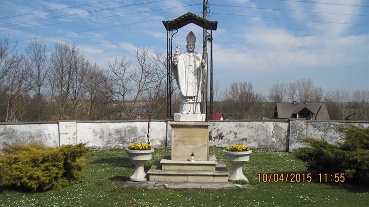 Pomnik św. Wojciecha (ok. 956-997) pochodzi z 1997 r. i ustawiono go na pamiątkę millenium jego męczeństwa. Św. Wojciech zginął 23 kwietnia 997 r. w okolicach Świętego Gaju, prawdopodobnie od uderzenia toporem lub włócznią w okolice serca. Kanonizowany został już w 999 roku przez Sylwestra II i jest patronem m.in. Polski, Czech i Węgier. Figura znajduje się na terenie kościoła pod wezwaniem św. Wojciecha.