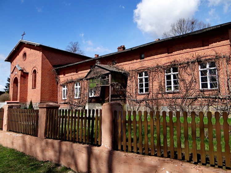 Z tyłu nieduża betonowa dzwonnica (także dość nietypowa), wewnątrz której wisi kielichowaty dzwon udekorowany liśćmi akantu i inskrypcją wskazującą, że odlany został w 1854 r. w Tucznie (Tuetz), za czasów pastora Kuntze. Mijając dzwonnicę dojdziemy do cmentarza. Obok współczesnych nagrobków zachowały się na nim śladowe ilości nagrobków ewangelickich.