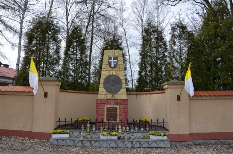 Na placu przed kościołem p.w. św. Jana Chrzciciela w 2000 roku parafianie wznieśli obelisk zwieńczony krzyżem, który jest poświęcony papieżowi Janowi Pawłowi II. Na umieszczonym na obelisku medalionie widnieje płaskorzeźba papieża a powyżej tarcza herbowa z krzyżem łacińskim oraz literką M, która oznacza Maryję. Wcześniej, w czerwcu 1987 roku, przy wejściu bocznym kościoła umieszczona została tablica w hołdzie papieżowi. Papież Jan Paweł II w dn. 27.06.1968 r. jako kardynał krakowski przebywał i modlił się w tutejszej świątyni.