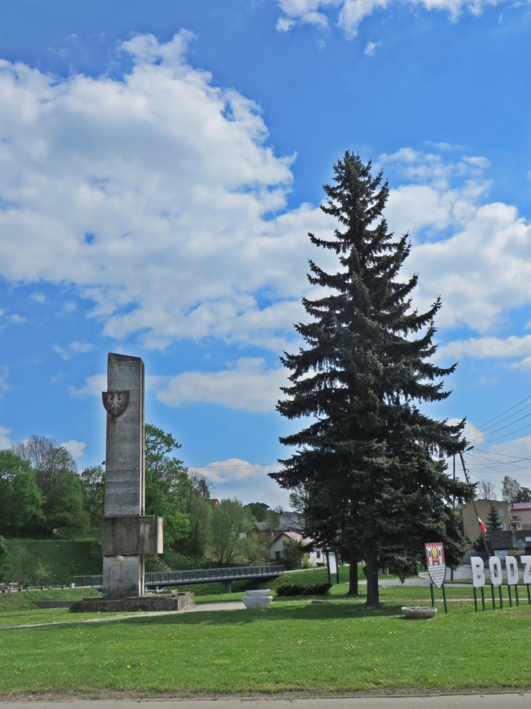 Przy wjeździe do Bodzentyna wita nas pomnik partyzantów. Jest to betonowy obelisk z inskrypcją „Żołnierzom – Bojownikom Ruchu Oporu – antyfaszystom zamordowanym w rejonie Bodzentyna w latach 1939 – 1945 przez zbrodniarzy hitlerowskich wieczna cześć i chwała”. Został odsłonięty w 1972 roku.