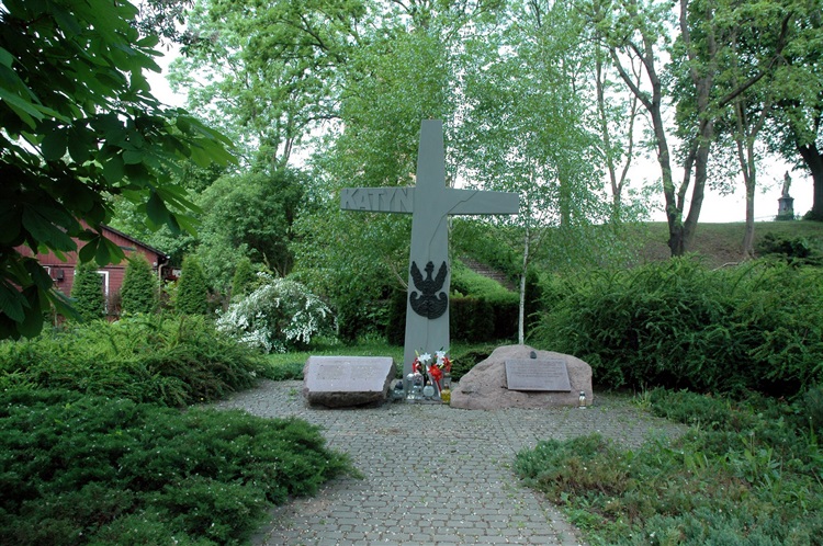 Będąc w Ciechanowie i spacerując między innymi ulicą Księdza Piotra Ściegiennego w kierunku ciechanowskiej Fary p.w.Św.Józefa, po prawej stronie zauważymy charakterystyczny pomnik składający się z okazałej wielkości białego krzyża z rysą biegnącą od prawego ramienia poprzez środek krzyża, gdzie widoczny jest przytwierdzony orzeł w ciemnym kolorze. Na lewym ramieniu krzyża widoczny jest napis KATYŃ. Zaprojektowany został przez ciechanowskiego artystę plastyka Zygmunta Szczepankowskiego.