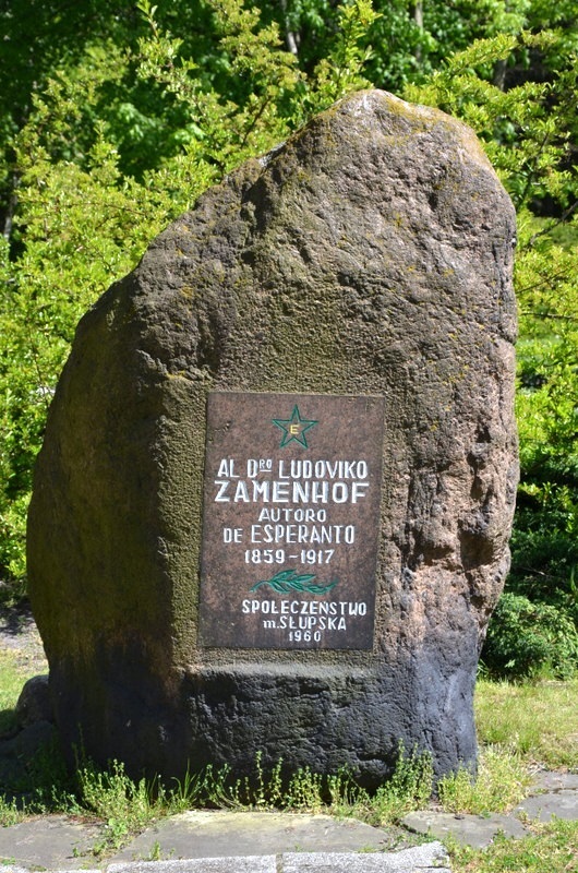 Na skraju parku im. Jerzego Waldorfa ustawiony jest głaz narzutowy z tablicą pamiątkową poświęconą pamięci Ludwika Zamenhofa – lekarza okulisty i inicjatora esperanto. W górnej części tablicy nad imieniem i nazwiskiem Zamenhofa znajduje się pięcioramienna gwiazda z literką "E" umieszczoną w centralnym punkcie gwiazdy. Obelisk został postawiony w 1960 r.
