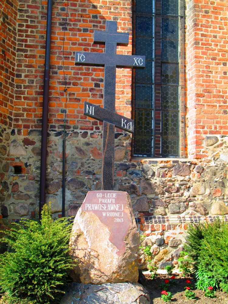 Prawosławna cerkiew parafialna pod wezwaniem Podwyższenia Krzyża Świętego jest jednym z ważniejszych zabytków nie tylko Rudnej, ale także najbliższej okolicy. Pierwotnie była świątynią katolicką. Na początku lat pięćdziesiątych XX wieku obiekt został adaptowany dla potrzeb liturgii prawosławnej. Tuż przy cerkwi znajduje się pamiątkowy krzyż upamiętniający to wydarzenie. Postawiony został w 2013 roku, z okazji jubileuszu 60-lecia powstania parafii prawosławnej. Jest to trzyramienny krzyż postawiony na kamieniu z tablicą pamiątkową.
