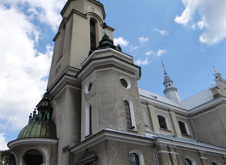 Budowę prowadzono w latach 1928 – 1930. W kronikach parafialnych zanotowano: „Kościół parafialny murowany w stylu barocco o trzech nawach w formie krzyża wraz z murami jest 40 metrów szeroki i 18 metrów wysoki (…) posiada 6 wieżyczek miedzią krytych (…) Boczne nawy są 5 metrów wysokie". Dwa lata później dobudowano dwie wieże.