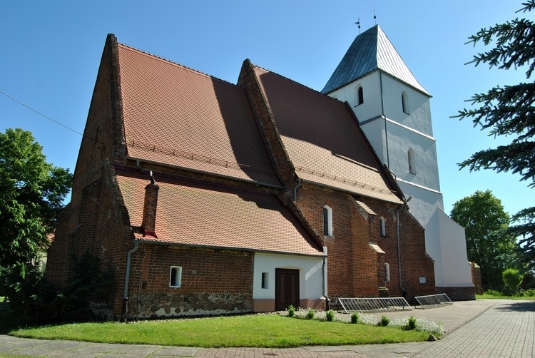 Budowa tutejszej świątyni, została podzielona na kilka etapów. Najstarsza część - prezbiterium pochodzi z początków XIV wieku. Natomiast nawa główna oraz sklepienia, zostały wzniesione w XV wieku. Kościół przez ok. 100 lat (XVI i XVII), był w posiadaniu protestantów. Na skutek pożaru w XIX wieku, został odnowiony i częściowo przebudowany w stylu neogotyckim. Z tego też okresu pochodzi stylowe ogrodzenie wokół kościelne wraz kaplicami świętych.