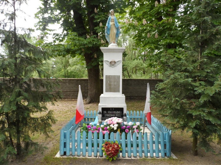 Przy kościele pw. Narodzenia Najświętszej Maryi Panny znajduje się figura Matki Boskiej umieszczona na wysokim czterostopniowym cokole, na którym umieszczone są dwie tablice - na pierwszym stopniu na tablicy jest wyryty napis: „POCIESZYCIELKO STRAPIONYCH MÓDL SIĘ ZA NAMI”, a na trzecim ”S.P. ŻOŁ. ARMII KRAJOWEJ STRACONYM PRZEZ GESTAPO I UB 1942-1956”.