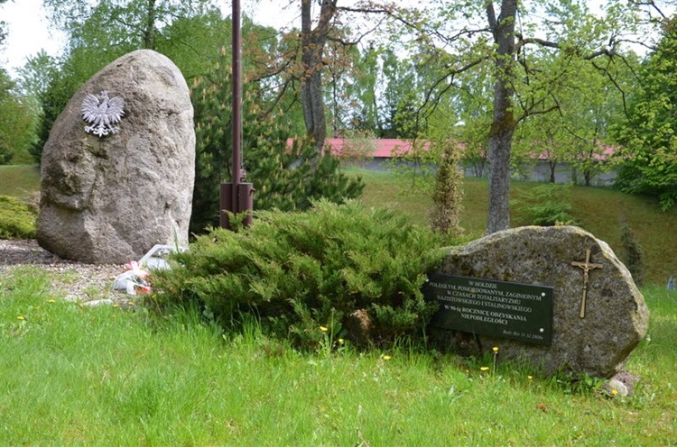 Pomnik upamiętniający miejsca ofiar II wojny światowej składa się z trzech głazów narzutowych. Usytuowany jest przy kościele p.w. Najświętszej Maryi Panny Królowej Polski.
