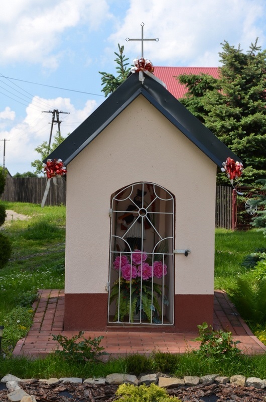 Współczesna murowana i otynkowana kapliczka znajduje się na skraju drogi. Została wzniesiona na planie prostokąta, nakryta jest dwuspadowym dachem zwieńczonym niewielkim krzyżem. Wewnątrz kapliczki na przyściennym postumencie stoi ludowa figura św. Jana Nepomucena. Wejście do kapliczki zabezpieczone jest ozdobną metalową kratą. Kapliczka przyozdobiona jest sztucznymi kwiatami.