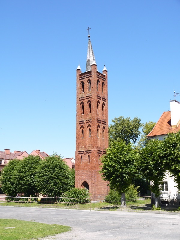 Stojąca po środku starego rynku samotna wieża kościoła ewangelickiego, w roku 1993 wpisana została do rejestru zabytków.