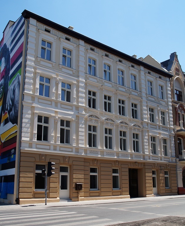 Okazała kamienica znajdująca się przy ul. Sienkiewicza 18 (d. ul. Mikołajewska) była własnością Arona Schlessera. Została wzniesiona w 1893 r. według planów architekta Stefana Jana Lemene. Pierwotnie był to obiekt dwupiętrowy, w którym roku dobudowano trzecią kondygnację nie wiadomo. W 2015 r. w ramach projektu "Mia100 Kamienic" kamienica odzyskała swój dawny blask i cieszy oczy niejednego przechodnia.