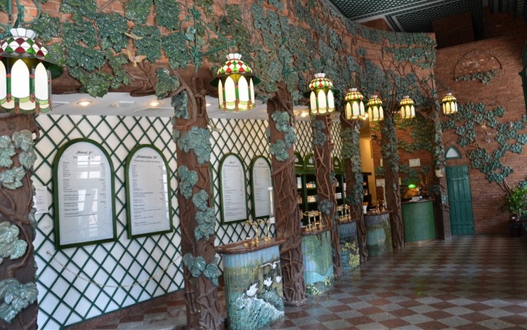 Był to jeden z pierwszych obiektów uzdrowiskowych wzniesionych z inicjatywy Karola hr. Załuskiego. W tym zbudowanym w 1837 roku obiekcie pierwotnie odbywały sie kąpiele borowinowe. Obecny wygląd budynek zawdzięcza przebudowom jakim został poddany w 1922 roku i w latach 80 – tych XX wieku. Obiekt pijalni wzniesiony jest na planie wydłużonego prostokąta z arkadami w fasadzie frontowej oraz bocznych.