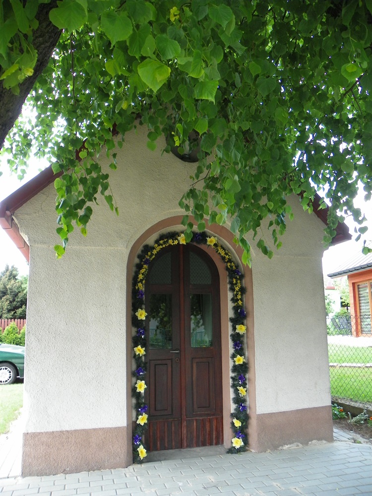 Kapliczka jest murowana, otynkowana, przekryta dwuspadowym dachem pokrytym - niestety - blachą. Na styku kalenic osadzono niewysoką wieżyczkę na sygnaturkę. Bryła zakończona została półokrągłą absydką. Elewacje nie są zdobione, z wyjątkiem lekko wystającego gzymsu wieńczącego spod okapu. W bocznych elewacjach osadzono po jednym małym okienku doświetlającym wnętrze.