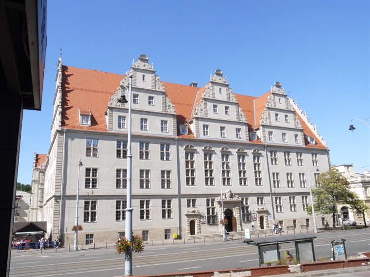 Na przełomie XIX i XX w. centrum administracyjne miasta przesunęło się z Głównego Miasta na zachód, za linię torów kolejowych. Obok gmachów Naprezydentury i władz prowincji Prusy Zachodnie (zburzonych w czasie wojny) powstał budynek sądu. Neorenesansowa budowlę oddano do użytku 29 października 1910 r. W 2015, w związku z 70. rocznicą powstania Sądu Okręgowego gmach odnowiono.
