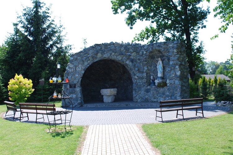 Pomysł stworzenia Groty pojawił się w 2009 roku podczas pielgrzymki parafialnej. Ks. proboszcz zaproponował wówczas aby każdy uczestnik pielgrzymki zabrał kamyk w celu złożenia go w fundamencie Groty. Projektantem był parafianin Czesław Kiełkowski. 11 lutego 2010 roku poświęcono kamień węgielny, a budowę Groty ukończono 28 sierpnia 2011 roku.
