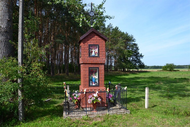 Jak widać na zdjęciu z lewej strony fotografii stoi słup. Podczas jedej z kolejnych tras krajoznawczych zwróciłem uwagę na coś, co wcześniej mi umykało. Otóż, jeśli chodzi o północne Mazowsze, niemało słupów betonowych podtrzymujących linie stawiano – w trakcie powojennej elektryfikacji wsi polskich – w pobliżu głównie krzyży przydrożnych. Czyżby przesąd?