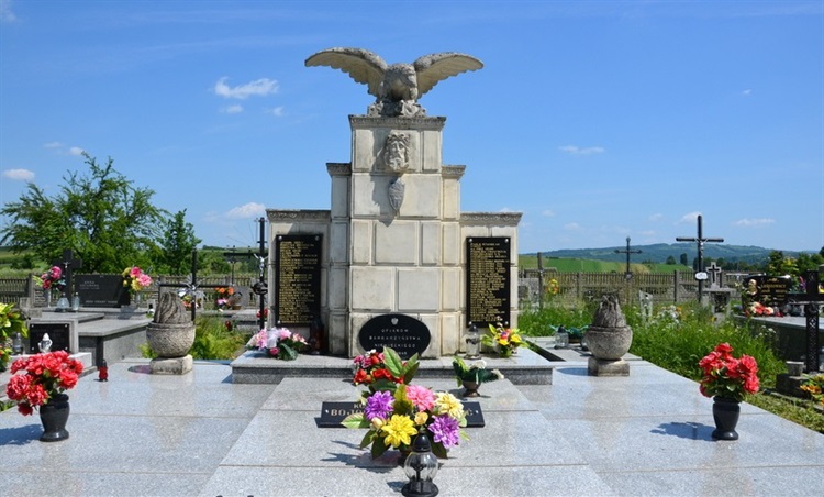 Zbiorowa mogiła znajduje się na cmentarzu parafialnym w jego północno – wschodniej części. W mogile tej pochowano poległych i zamordowanych podczas II wojny światowej mieszkańców Nowego Żmigrodu i okolicznych wiosek. Nad zbiorową mogiłą wzniesiony został pomnik zwieńczony orłem z rozpostartymi skrzydłami. Na postumencie pomnika, poniżej sylwetki orła umieszczona została płaskorzeźba głowy Chrystusa oraz tarcza z sylwetką żołnierskiego orła, dwoma mieczami oraz napisem "1410 – 1945 Grunwald – Berlin". Napis na tarczy łączy zwycięstwo pod Grunwaldem i zakończenie II wojny światowej. Po bokach postumentu umieszczone zostały tablice z nazwiskami poległych.