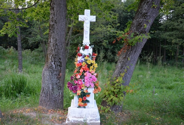 Zabytkowe krzyże wykonane przez miejscowych kamieniarzy ustawione są na skraju dogi biegnącej przez wieś. Ustawione są na postumentach w większości z nieczytelnymi i zatartymi inskrypcjami. Na niektórych krzyżach znajduje się figurka ukrzyżowanego Chrystusa. Bielone krzyże ozdobione są sztucznymi kwiatami.