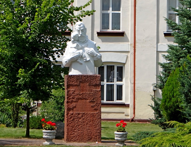 Zwoleń jest miastem blisko związanym z osobą Jana Kochanowskiego. To tutaj znajdowało się drugie (po poznańskim) probostwo, którym tytularnie zarządzał Jan z Czarnolasu. Tutaj także spoczywają jego doczesne szczątki złożone w krypcie pod podłogą miejscowego kościoła . Poecie wystawiono w mieście dwa pomniki – oba dłuta Władysława Jani z Warszawy. Starszy z nich, odsłonięty w 1961 r. stoi w sercu miejscowości, na skwerze w pobliżu ratusza. Powstał z inicjatywy mieszkańców, którzy już w 1956 r. utworzyli Społeczny Komitet Budowy Pomnika Jana Kochanowskiego. Pierwszym czego ów komitet dokonał była zmiana nazwy placu Feliksa Dzierżyńskiego na Plac Jana Kochanowskiego.