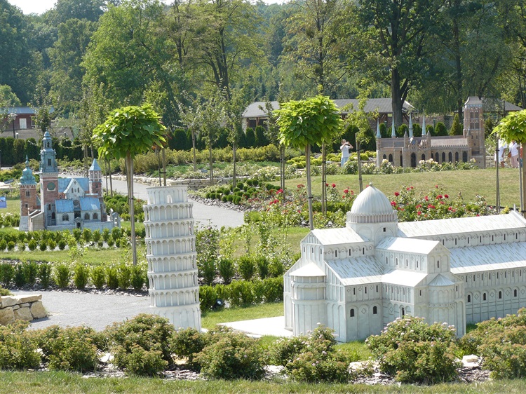 Na powierzchni 20 000 metrów kwadratowych umiejscowiono szesnaście miniatur znanych obiektów sakralnych w Polsce i na świecie. Wszystkie miniatury są wykonane w skali 1:25, (największa miniatura ma wysokość prawie 5 metrów). Obok parku, w budynkach z przełomu XiX i XX wieku zlokalizowano restaurację, salę bankietową i pokoje noclegowe. Na terenie kompleksu znajduje się również park linowy.