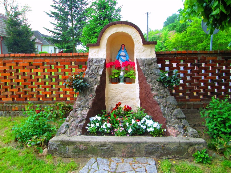 W Łuszkowie przy kościele p.w. Świętych Piotra i Pawła znajduje się grota z figurą Matki Boskiej. Jest to murowana grota, z wykorzystaniem kamieni polnych. Figura Matki Boskiej w biało-niebieskiej szacie umieszczona jest we wnęce.