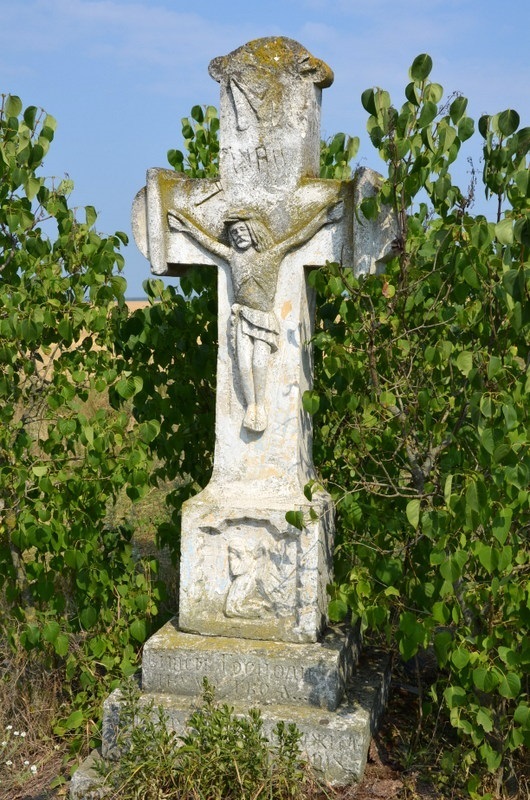 Krzyż usytuowany jest na skraju skrzyżowania bocznej drogi asfaltowej z drogą polną. Kamienny krzyż z płaskorzeźbą ukrzyżowanego Chrystusa wieńczy dwustopniowy postument z napisami wyrytymi w języku ukraińskim. Na pierwszym stopniu widnieje nazwisko fundatora i rok jego postawienia "Ten krzyż postawił Iwan Leon R 1918", natomiast na drugim stopniu napis, który po przetłumaczeniu brzmi "Zbaw Panie lud Twój .....".