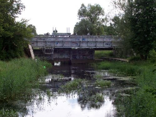 Linia kolejowa Stare Bielice-Skwierzyna oprócz mniejszych cieków wodnych przekraczała trzy większe rzeki: Noteć, Wartę i Starą Noteć. Na tej ostatniej postawiono bardzo ciekawy most. Wkomponowano w niego pancerne zastawki i stworzono przy tym jaz. Przez mieszkańców Drezdenka nazywany jest „kolejówką". Nieużytkowany jest od 1998 roku. Pancerny jaz zastawkowy zachował się do dziś pokryty graffiti.