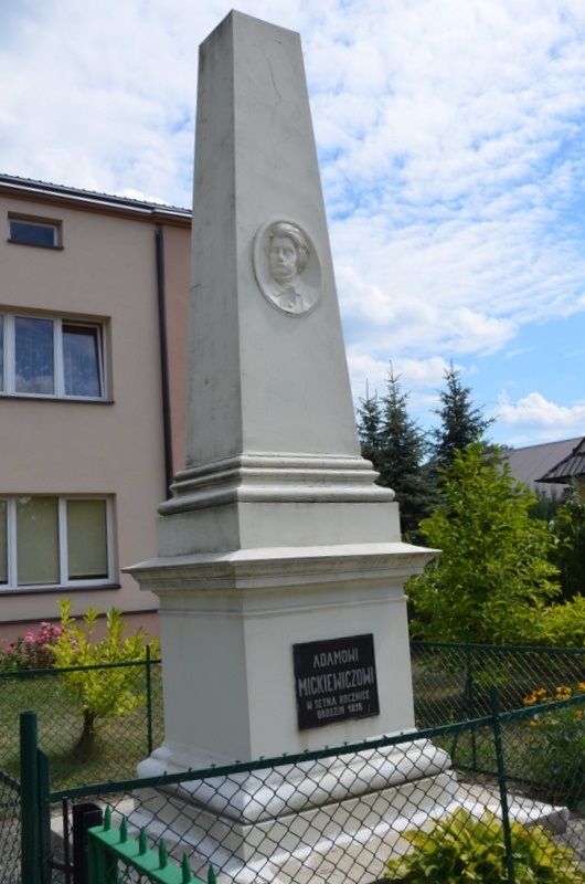 Pomnik na cześć Adama Mickiewicza usytuowany jest przy ul. Tadeusza Kościuszki. Został ufundowany przez mieszkańców miasteczka w setną rocznicę urodzin poety w 1898 r. Pomnik wykonany w formie wysokiego kamiennego słupa wieńczącego postument z napisem "ADAMOWI MICKIEWICZOWI W SETNĄ ROCZNICĘ URODZIN 1898". Na ścianie frontowej górnej części pomnika umieszczona jest płaskorzeźba popiersia poety.