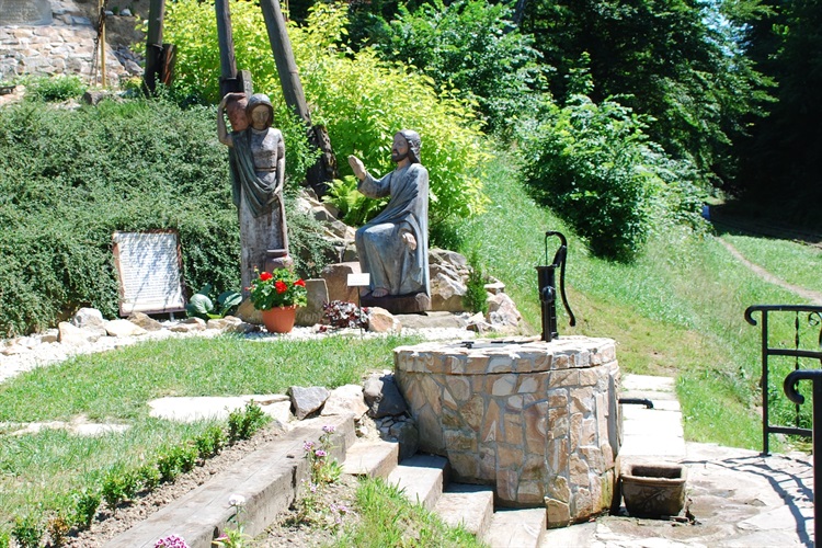 Scena biblijna przedstawiająca spotkanie Jezusa z Samarytanką przy studni znajduje się na drodze prowadzącej do ruin obronnego Klasztoru Karmelitów Bosych, w okolicy przejazdu kolejowego.