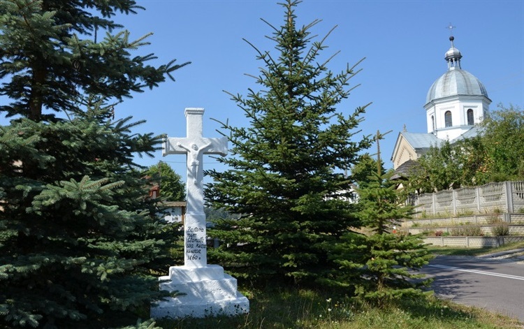W centrum wsi, nieopodal muzeum lokalnego i cerkwi greckokatolickiej stoi duży kamienny krzyż. Krzyż typowy dla kamieniarki bruśnieńskiej z płaskorzeźbą ukrzyżowanego Chrystusa ustawiony jest na trzystopniowej kamiennej podstawie.