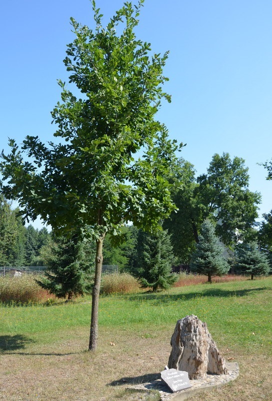 Dęby te posadzone w 2005 r. otrzymały imiona: papieża Jana Pawła II i kardynałów Stefana Wyszyńskiego i Adama Sapiehy. Przed każdym dębem na kamiennej podstawie wykonanej w kształcie ryby – symbolu pierwszych chrześcijan, umieszczona jest kamienna płytka z wypisanym imieniem danego dębu oraz skamieniały pień drzewa.