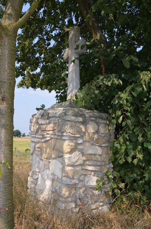 Krzyż ten prawdopodobnie jest najstarszym krzyżem w regionie. Został wzniesiony przez mieszkańców i jeńców uwolnionych z niewoli tatarskiej w 1672 roku. Data ta widnieje na jednym z kamieni postumentu.