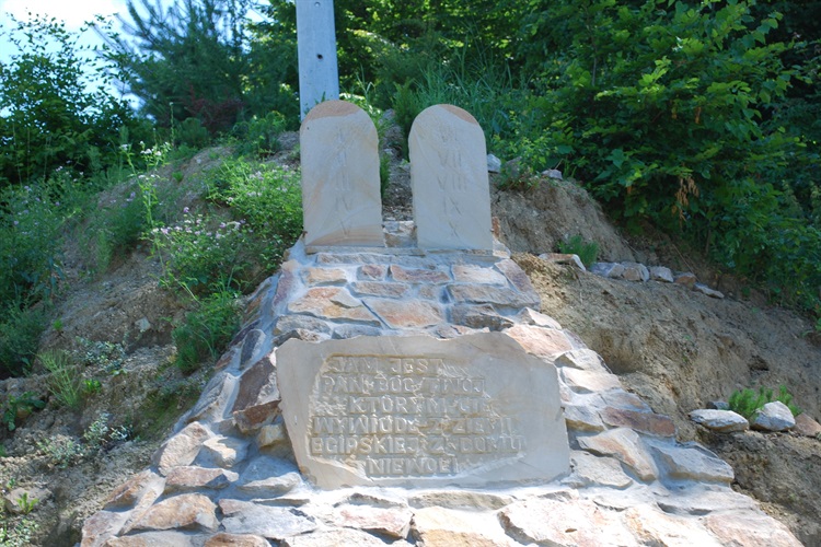 Tablice wykonano w formie płyt z naniesionymi cyframi rzymskimi, które to symbolizują przykazania. Dodatkowo idąc dalej, natrafiamy kolejno na dziesięć płyt. Na każdej płycie z osobna umieszczono przykazania w formie tekstu. Całość znajduje się wzdłuż drogi prowadzącej do ruin obronnego Klasztoru Karmelitów Bosych, a początek znajduje się w okolicy przejazdu kolejowego.