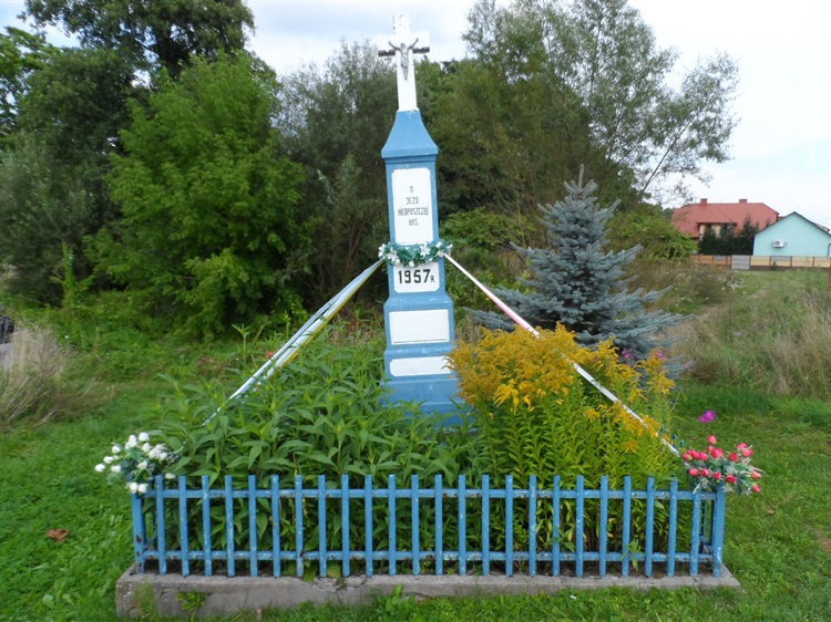Przy skrzyżowaniu ulicy Mostowej i Sikorskiego znajduje się murowany pomalowany na biało-niebiesko krzyż. Został wzniesiony w 1957 r.
