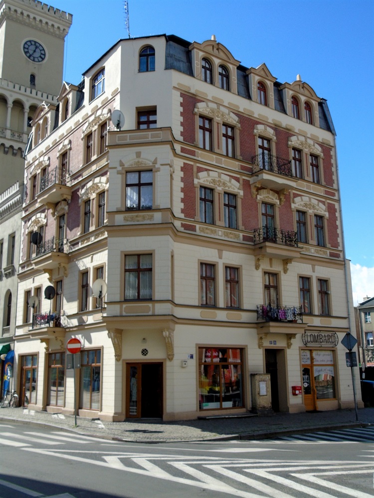 Jednym z ocalałych domów kwartału wewnątrzrynkowego jest okazała kamienica pod numerem 35. Neorenesansowy budynek wzniesiono na fundamentach wcześniejszego obiektu w początkach XX wieku. Czterokondygnacjna kamienica z użytkowym poddaszem otrzymała fasady wykonane w części z klinkierowej cegły uzupełnionej tynkowanymi fragmentami. Zwracają uwagę zdobienia okołookienne oraz balkony. W narożniku znajduje się wykusz, nad którym do 1945 r. znajdowała się wieżyczka zwieńczona hełmem.