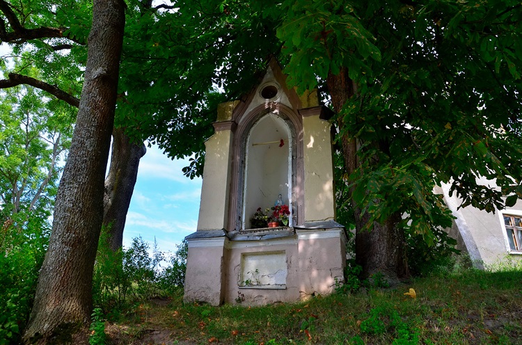 Zabudowa wsi to to budynki współczesne ale i wiele domów z początków XX wieku, bardzo charakterystycznych dla regionu Warmii. Przy jednym z takich domów, będących dodatkowo siedzibą sołtysa wsi postawiono kiedyś kapliczkę, równie typowy i wyróżniający element. To bardzo ciekawy i ładny obiekt utrzymany w stylu neogotyckim, datowany na koniec XIX wieku.