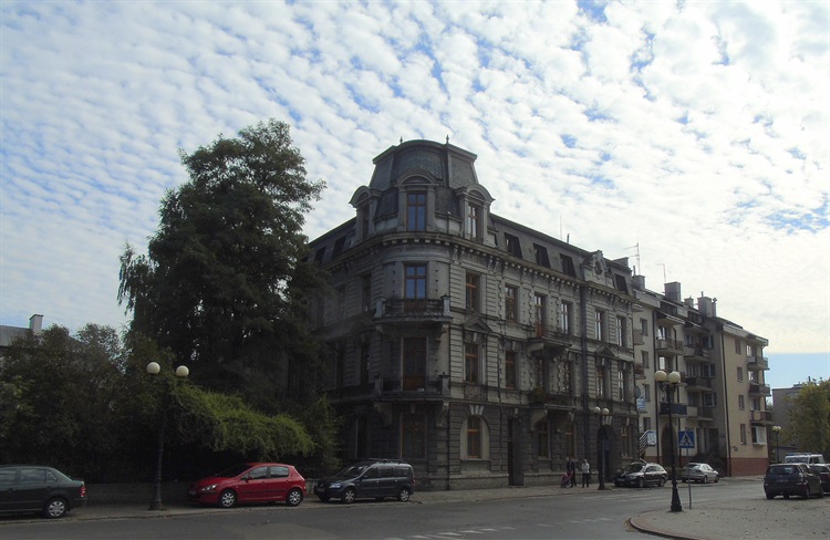 Kamienica zbudowana została w ostatnim ćwierćwieczu XIX stulecia. Autor projektu połączył architektoniczne cechy renesansu, baroku i klasycyzmu, ale mieszanka ta dała doskonały efekt. Budynek ma bogato zdobione fasady, a jego charakterystycznym detalem jest narożna nadbudówka w partii dachowej. Dom jest własnością pobliskiej parafii św. Stanisław Biskupa.
