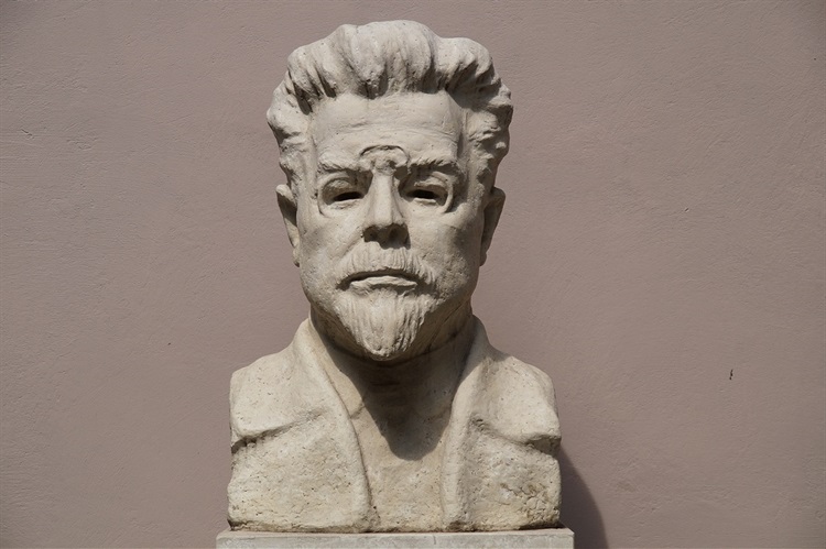 Władysław Reymont siedzi również na podróżnym kufrze z notatnikiem w ręku i zdaje się, jakby dalej obserwował życie ludzi miasta podczas pisania "Ziemi obiecanej". Jest jeszcze jeden symbol upamiętniający postać tego wybitnego prozaika i nowelisty. Jest nim jego popiersie. Niewidoczne dla wszystkich z zewnątrz ponieważ znajduje się za ogrodzeniem pałacu Karola Scheiblera, przy wejściu do dzisiejszego Muzeum Kinematografii. To właśnie m.in. w tym pałacu nakręcono w 1974 r. kilka scen do "Ziemi obiecanej" w reżyserii Andrzeja Wajdy.