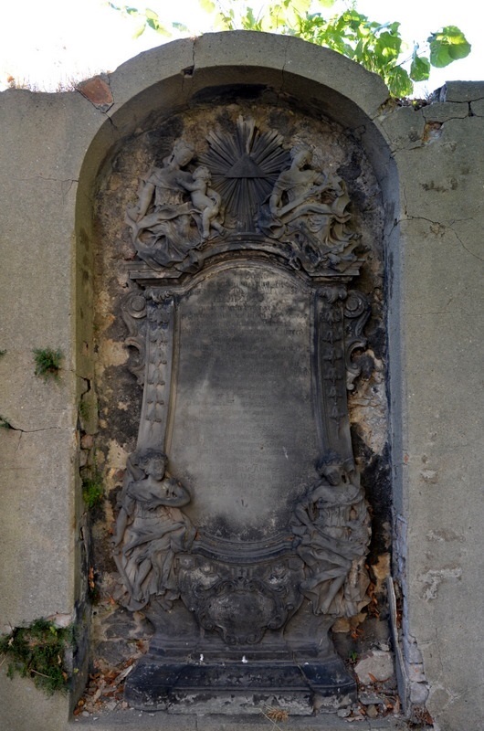Zwiedzając kościół p.w. Podwyższenia Krzyża Świętego warto zatrzymać się na chwile przy epitafiach i płytach nagrobnych umieszczonych w murze przed kościołem. Te przepiękne płyty wykonane z piaskowca niestety w wyniku działania warunków atmosferycznych stają się powoli coraz mniej czytelne. Na płyty nagrobne czy epitafia, na których wyryta jest niejednokrotnie historia rodziny pozwolić sobie mogli tylko zamożni. Barierę stanowił koszt ich wykonania.