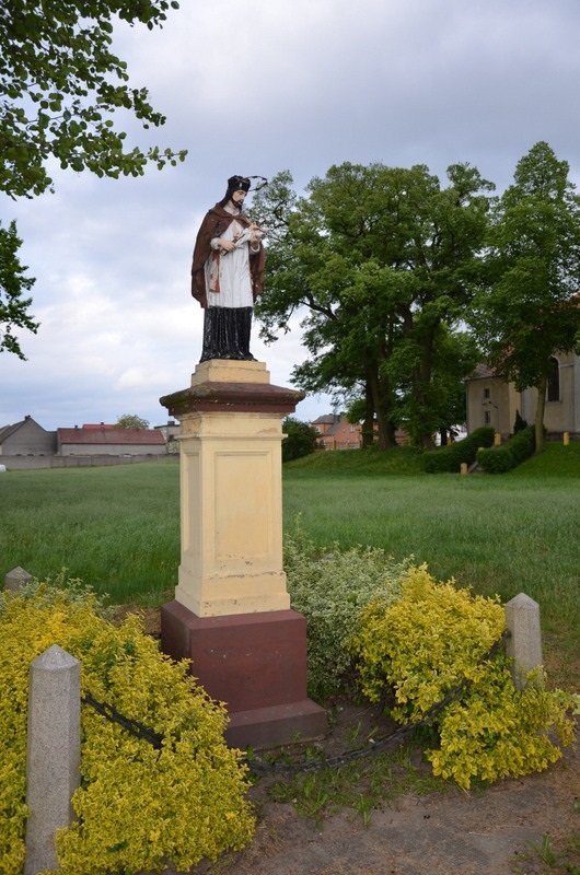 Nieopodal kościoła Świętej Trójcy na skraju drogi, na wysokim postumencie stoi figura św. Jana Nepomucena. Święty ubrany w strój kapłański z głową nakrytą biretem i aureolą oraz trzymanym w rękach krzyżem na gałązce palmy. Na postumencie, na którym stoi figura widoczne są płyciny. Być może w przeszłości znajdowały się tam inskrypcje związane z postacią św. Jana Nepomucena.