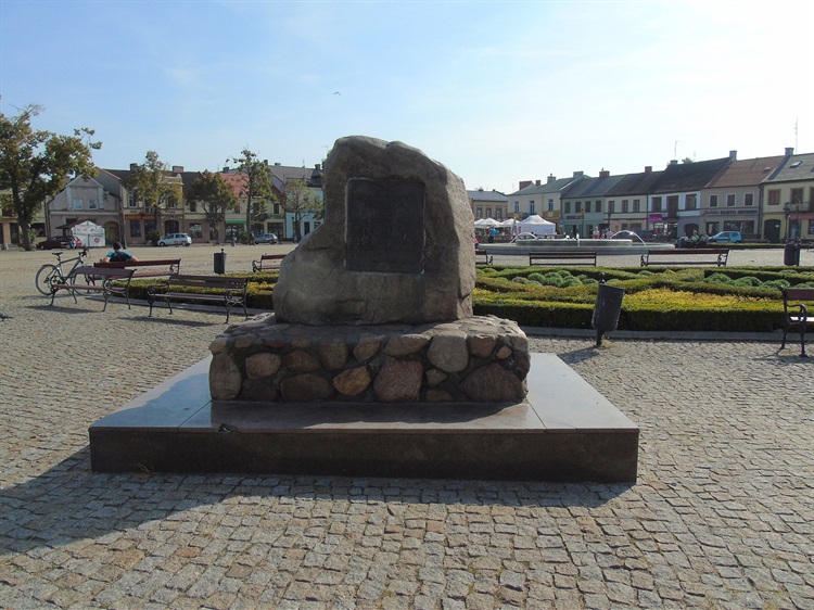 Pomnik na Nowym Rynku to granitowy głaz narzutowy z pamiątkową tablicą osadzony na postumencie z kamieni polnych.