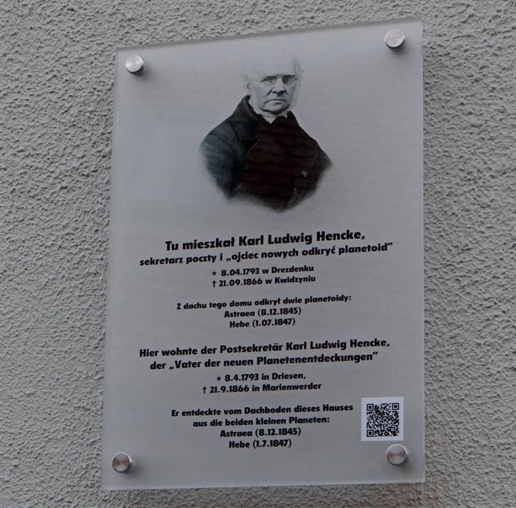Karl Ludwig Hencke (1793 – 1866) urzędnik pocztowy, astronom amator nazwany przez Aleksandra Humboldta „ojcem nowych odkryć planetarnych” urodził się w Drezdenku i z pewnością jest jednym z najsłynniejszych mieszkańców miasteczka.