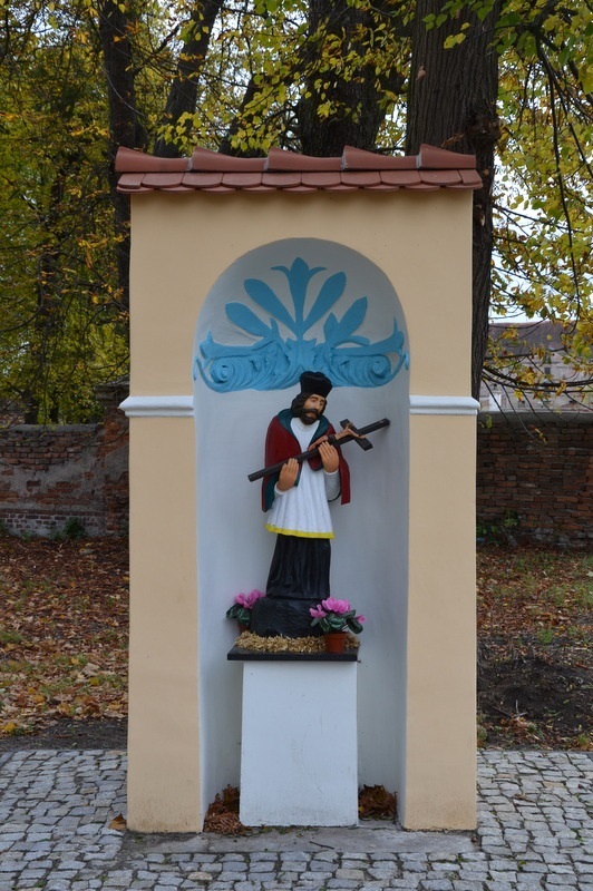 Kapliczka stoi nieopodal wjazdu na teren pałacu rodziny von Königsdorff. Jest to prosta kapliczka wzniesiona na planie prostokąta z otwartą niszą. Wewnątrz na prostym postumencie stoi drewniana figura Jana Nepomucena. Obecna ludowa figura świętego jest drugą figurą w tej kapliczce. Pierwsza figura pochodząca z okresu budowy kapliczki tj. z XVIII lub początku XIX wieku została skradziona.