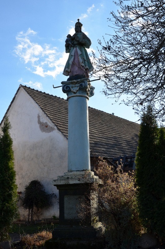 Została wzniesiona w 1802 roku. Kamienna kolumna posadowiona jest na prostokątnym postumencie posiadającym na frontowej ścianie płycinę z inskrypcją. Na ozdobnej głowicy kolumny umieszczona jest figura Matki Boskiej z Dzieciątkiem Jezus na prawym ramieniu. W wizerunku tym Matka Boska przedstawiona jest z insygniami królewskimi. W zwieńczeniu kolumny po jej bokach wystają dwa metalowe pręty przeznaczone na wianki lub wiązanki kwiatów.