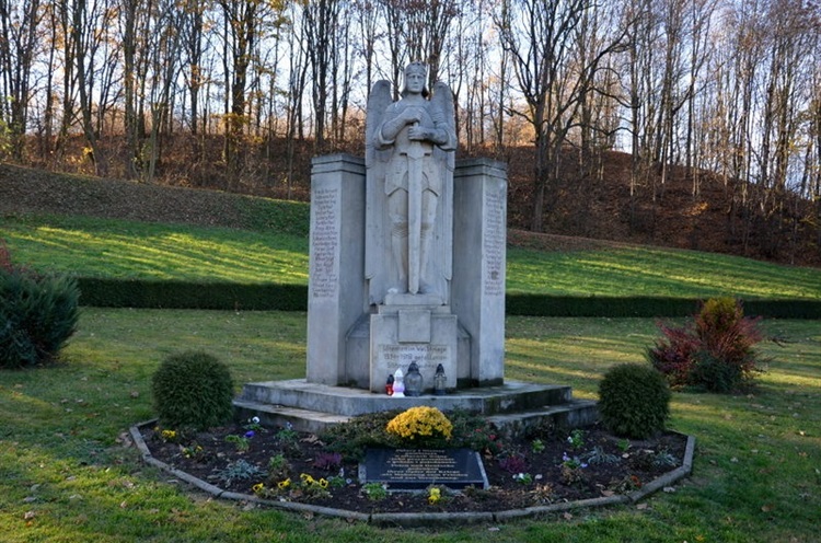Obok kościoła p.w. św.św. Szymona i Tadeusza stoi pomnik poświęcony poległym mieszkańcom miejscowości podczas I wojny światowej. Pomnik stojący na dwustopniowej podstawie przestawia Michała Archanioła w zbroi trzymającego w dłoniach miecz. Rzeźba Michała Archanioła stoi na postumencie z napisem w języku niemieckim "Unseren im Weltkriege 1914 – 1918 gefallenen Söhnen gewidmet". Postać stoi pomiędzy płytami, na których wyryte są nazwiska poległych. Natomiast tablica umieszczona u stóp pomnika zawiera tekst w językach polskim i niemieckim "Polacy i Niemcy pamiętają o ofiarach wojny - jako przypomnienie o pokoju i pojednaniu" (Polen und Deutsche gedenken ihrer Opfer der Kriege - als Mahnung zum Frieden und Versöhnung). Pomnik wykonany jest z piaskowca przywiezionego z pobliskich Gór Stołowych, a jego autorem jest Franz Wagner z Kłodzka. Ustawiony przy kościele został poświęcony 6.10.1929 roku. W 2002 roku pomnik poddany został renowacji, po czym został przeniesiony w obecne miejsce i 8.06.2003 roku ponownie poświęcony.