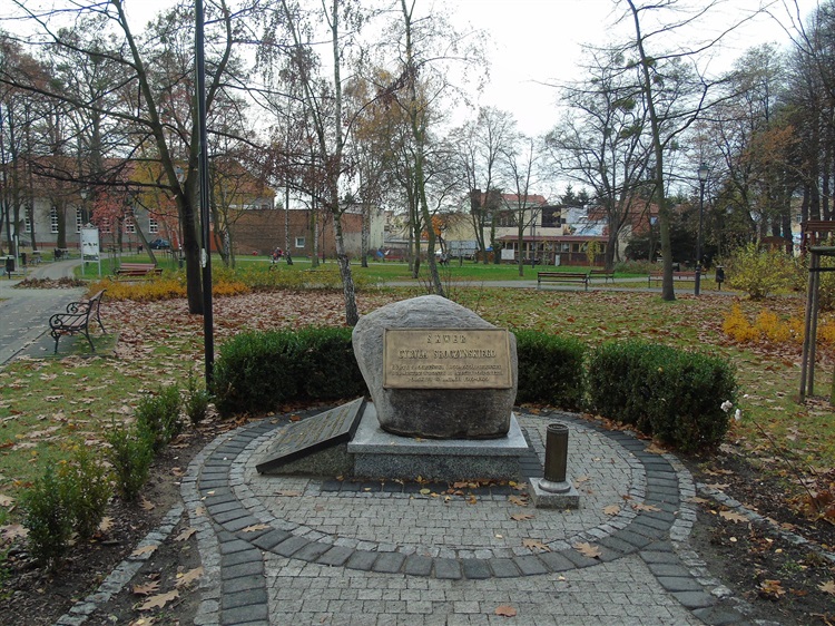 W 1996 r. pamięć pierwszego burmistrza uczczono we Wronkach patronatem skweru przy ulicach Niepodległości i Ratuszowej oraz głazem z pamiątkową tablicą. Z boku głazu znalazła się druga tablica ufundowana przez członków Bractwa Kurkowego, którego królem był Cyryl Sroczyński.