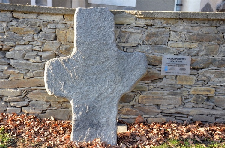 Krzyż pokutny stoi po zewnętrznej stronie XVII – XVIII wiecznego kamiennego muru otaczającego teren kościoła św. Barbary. Kamienny krzyż pokutny zwany również krzyżem pojednania wykuty został w średniowieczu w ramach kary za popełnioną zbrodnię. Obok krzyża na kamiennym murze umieszczona jest tabliczka informacyjna.