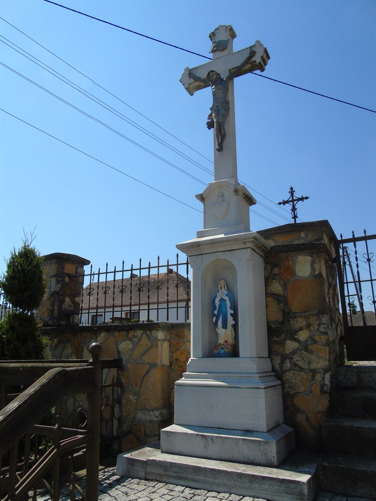 Kapliczka pochodząca z 1906 r. wykonana jest z piaskowca i składa się z kilku elementów. Górę stanowi krzyż z rzeźbą przedstawiającą ukrzyżowanego Chrystusa. Pod nim znajduje się postument z wnęką, w której stoi polichromowana figurka Matki Boskiej.